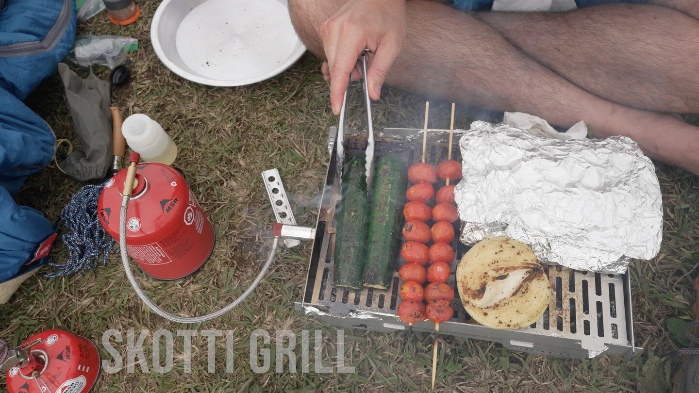 Here it is, after years of waiting and trying to get it shipped from Europe, the Skotti Grill! I cook up a full BBQ feast with a nice ribeye, kimchee sausages, grilled veggies, shiitake mushrooms with garlic and a nice hot pot of jasmine rice. I was super happy with the grill’s performance and I probably hold the record for best BBQ plate on the summit ridge.